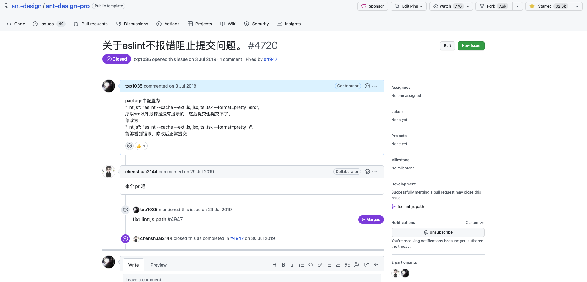 我第一次提 pr 是给 ant-design-pro 改 eslint 问题,因为当时业务使用的这一个脚手架,先是提交了 issues,然后过了小一个月作者回复让我来个 pr。就此我开始了我的开源之路,但凡遇到使用问题的仓库,能改则提交 pr,不能改就提 issues,陆续给 ant-design、umi、alibaba、github 等组织提交了 pr。现在也是 umi 维护者之一。在提交 pr 的过程中发现很多有意思技术,认识很多有意思的人,难道这就是一键 3 连的快乐。